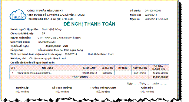 để duyệt thanh toán các khoản tiền cần chi. Đề