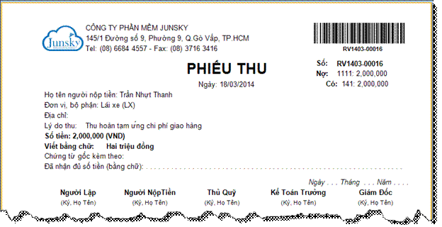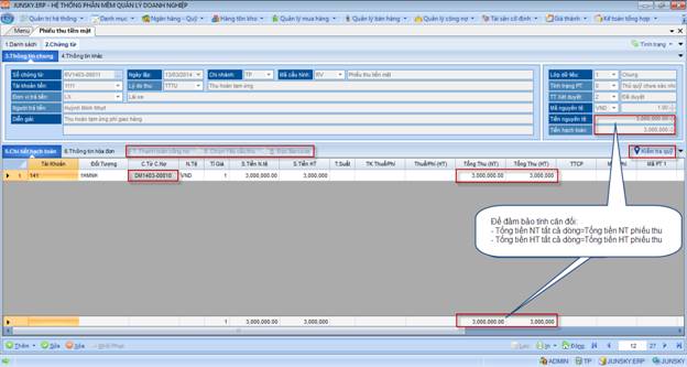 toán công nợ: Nếu phiếu thu là thu công nợ, nên nhấn