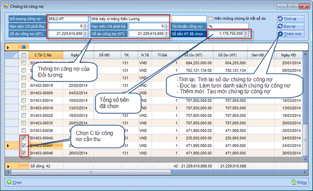 Chứng từ công nợ cần thu à Gơ lại số tiền