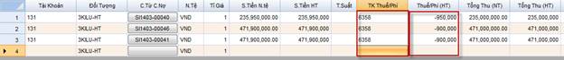 Gơ số tiền chiết khấu thanh toán là số âm vào cột