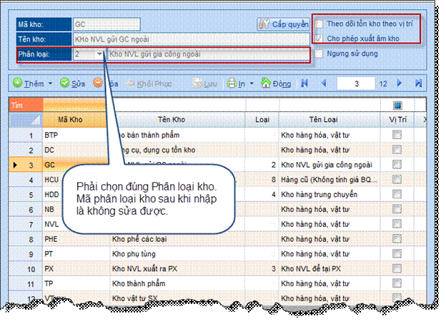 kho, vì phần mềm dùng mã phân loại kho để xử
