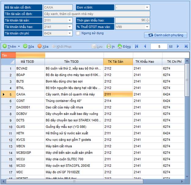 sản cố định quản lư chi tiết đến