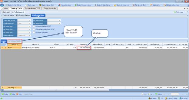 Giới thiệu: Giao diện lập phiếu Bán thanh lư tài sản
