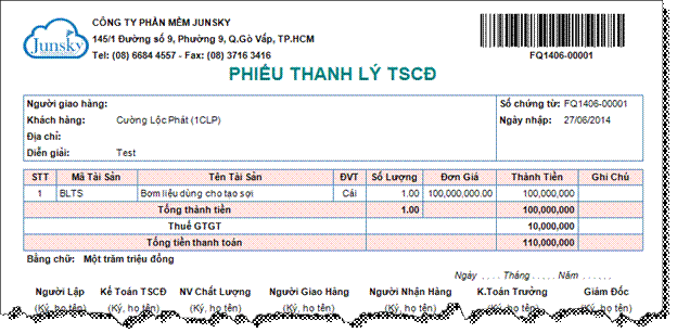 thể in hóa đơn giá GTGT ngay trong phiếu thanh lư (Hóa