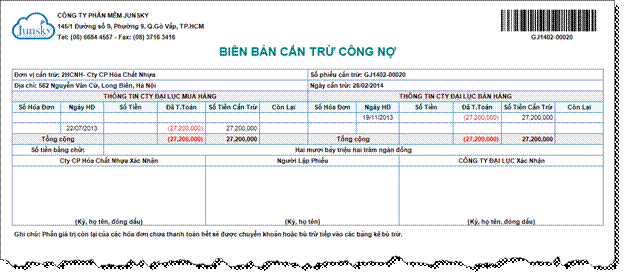 trừ công nợ: Tiện ích cho phép tạo nhanh phiếu bù