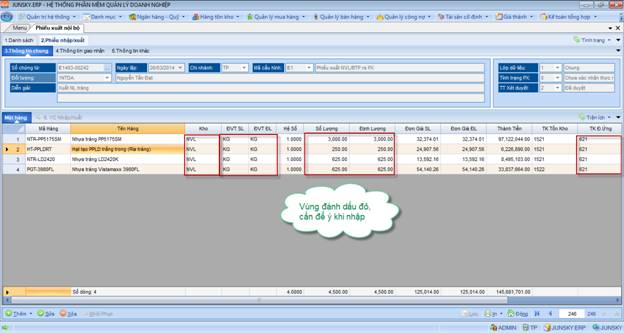 Hướng dẫn giao diện: Giao diện Phiếu xuất nội bộ cũng tương