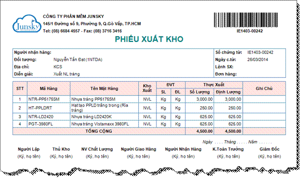 dữ liệu từ excel: Nhận dữ liệu phiếu xuất