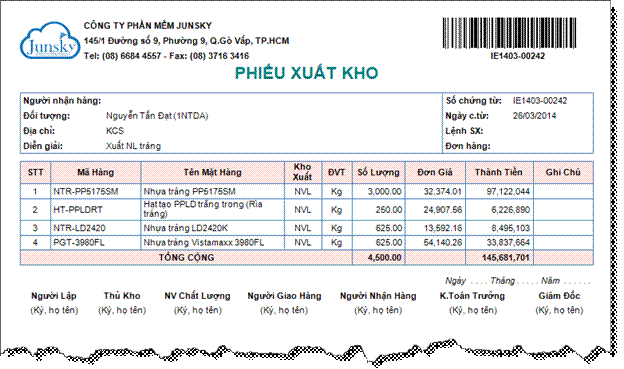 tự như các giao diện khác. Khi nhập phiếu xuất