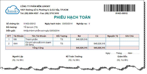 sản xuất (Nếu không sử dụng Phân hệ QLSX)