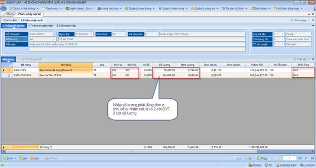 sử dụng 2 ĐVT, do đó, khi nhập số lượng,