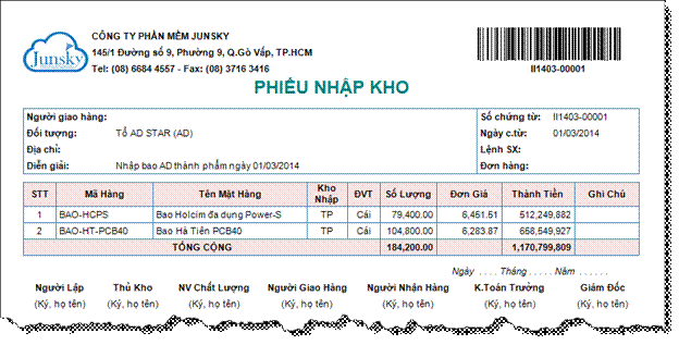 tự như các giao diện khác. Khi nhập phiếu nhập