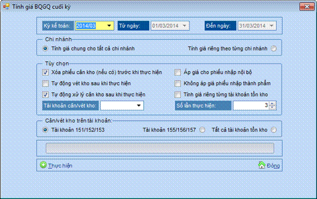 Kỳ kế toán: Chọn kỳ muốn chạy