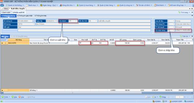 điều chuyển: Bên kho xuất khi xuất hàng sẽ