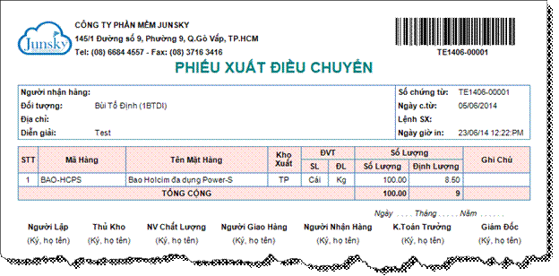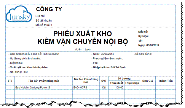 xuất kho kiêm hóa đơn vận chuyển nội bộ