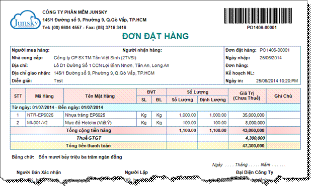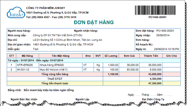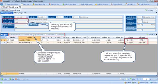 hưởng dữ liệu: Khi lập PO, có thể thừa hưởng
